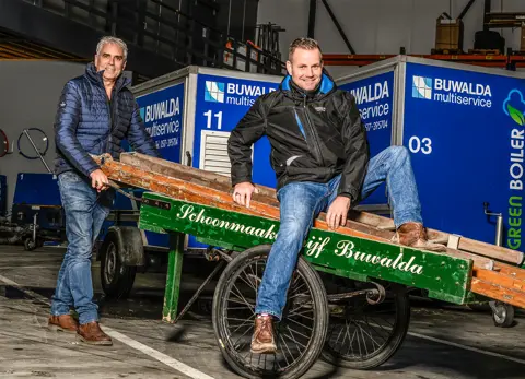 De kracht van Buwalda Multiservice zit volgens de heren in het veelzijdige dienstenaanbod. Het brede aanbod maakt dat Buwalda in diverse branches en op diverse fronten kan inspringen en zo opdrachtgevers compleet kan ontzorgen. Dat doen ze met het beste en ruim voldoende materiaal. “We hebben de hoogste hoogwerkers, waaronder een knikarmhoogwerker tot wel 42 meter en zo’n 60 werkbussen en 15 aanhangwagens met hogedrukunits. Laatst hebben we er weer 4 hogedrukunits bijgekocht,” schetst Gerard.