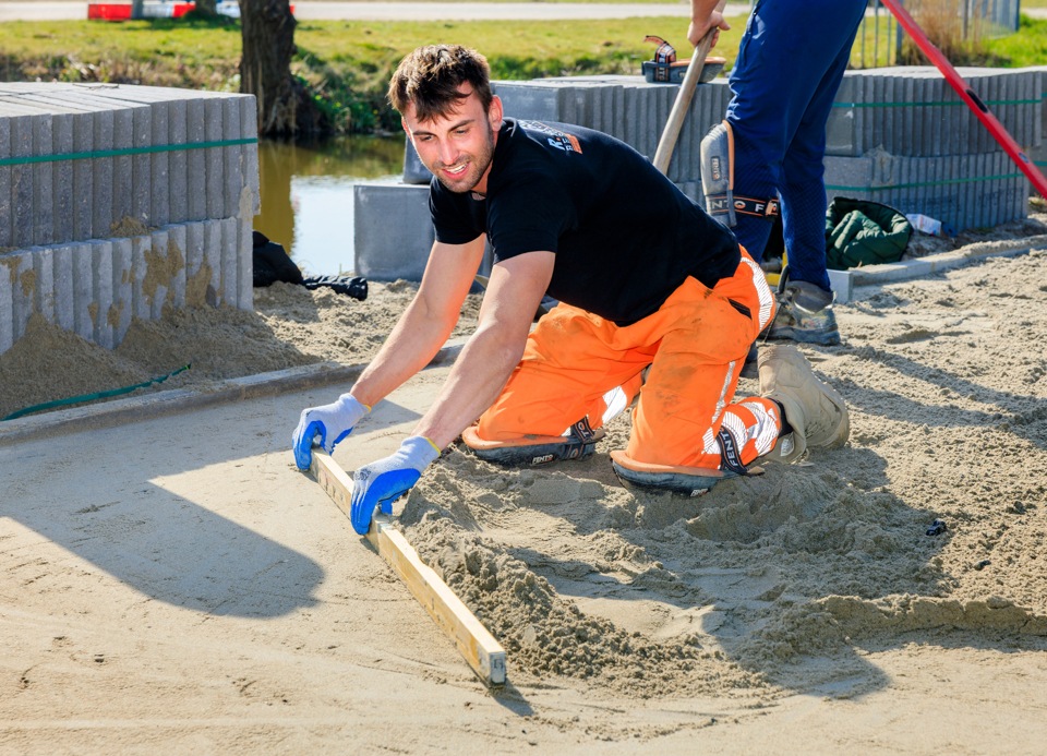 “Niet te snel willen. Eerst ervaring opdoen, leren hoe het vak écht werkt en netjes werken. Daarnaast is sociaal zijn belangrijk, want je werkt veel samen. En het allerbelangrijkste: je moet er energie van krijgen. Stratenmaker zijn is zwaar, maar ook heel leerzaam en mooi. Veel mensen onderschatten dat.”